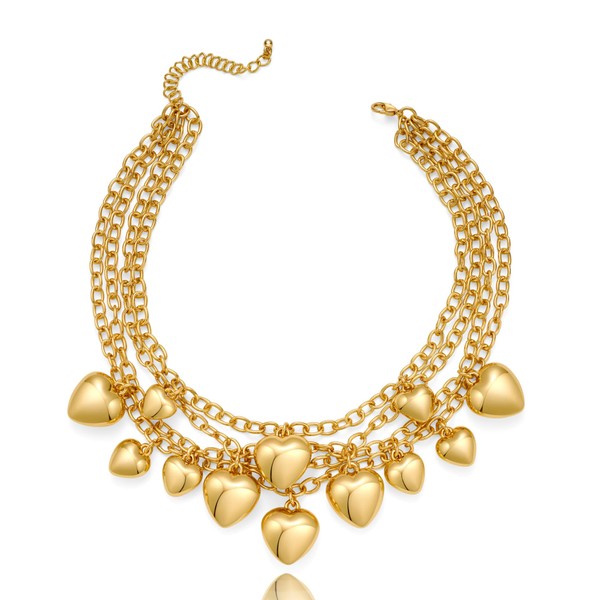 - Eye-catching dimension: This 4-layer gold heart necklace dances with gold hearts in staggered sizes – nice for vacation snaps in bikinis or adding drama to little black dresses at cocktail parties. The adjustable lobster clasp lets you rock it as a fierce choker or let hearts cascade down deep-V necklines.