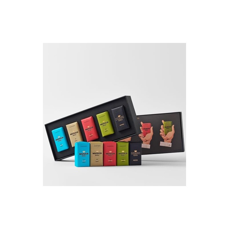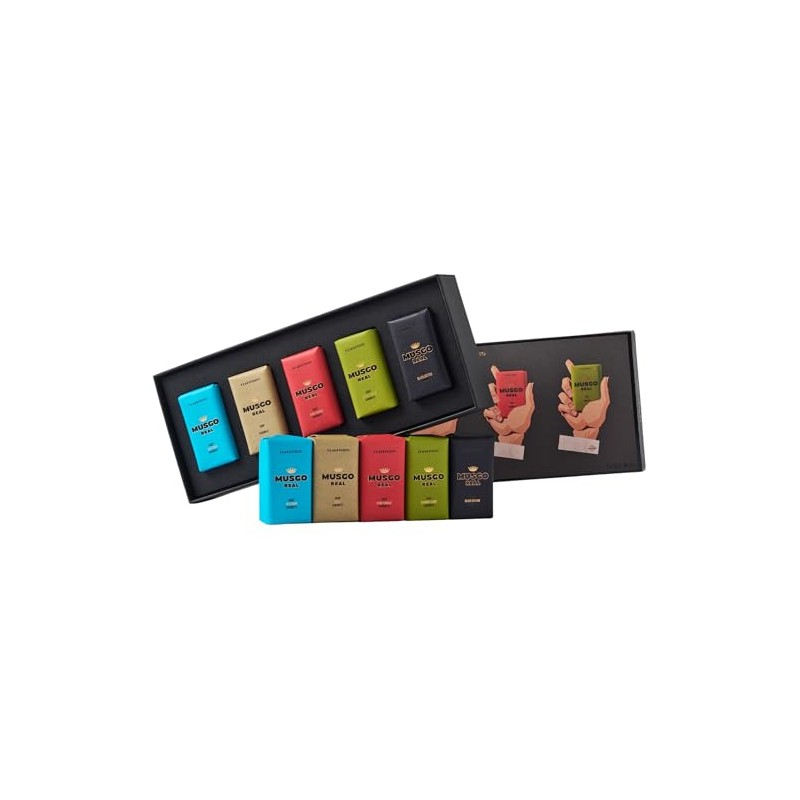- WHAT IT IS: This Musgo Real Mini Soap Gift Box is the Perfect Way to Discover Our Five Masculine Lines: Alto Mar, 1887, Puro Sangue, Classic Scent, + Black Edition. Five Different Moods Presented in an Elegant Black Box
