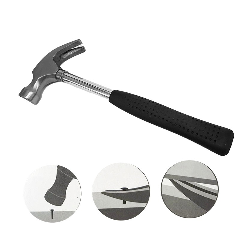 1、MULTIFUNCTIONAL TOOL: Versatile hammer suitable for woodworking, metalworking, and various other tasks for enhanced efficiency. 2、SAFETY FIRST: Engineered with safety features to ensure user protection during hammering activities. Choose and use with confidence! 3、DURABLE CONSTRUCTION: Made from premium iron materials, this hammer ensures long lasting durability and reliable performance. 4、PORTABLE AND PRACTICAL: Compact, lightweight claw hammer design for easy carrying and convenient use in different settings. 5、INNOVATIVE HORN SHAPE: Unique horn shaped design adds stability and accuracy to the hammer, optimizing accuracy in every strike.