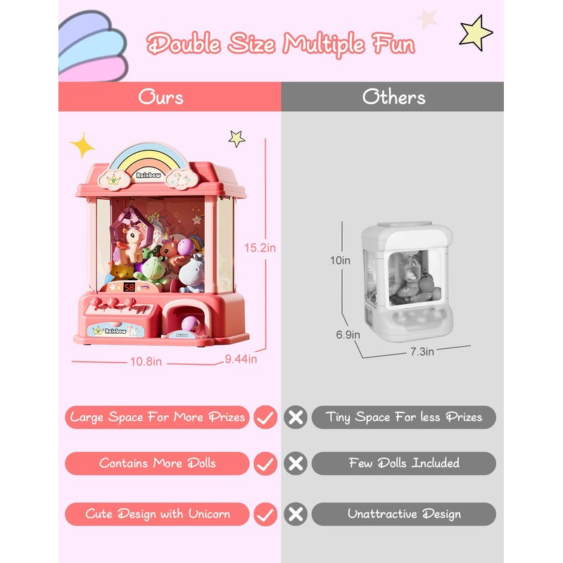 Kakamelon Claw Machine for Kids and Adults with Mini Prizes|Toys for Ages 8-13 Girls|Candy Machine Birthday Gifts for 6 7 9 10 12 Years Old