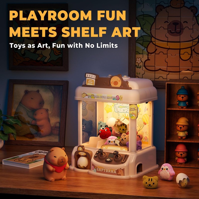 - Exclusive Original Capybara Mini Claw Machine, A Healing Home Artwork - Inspired by the capybara, this charming kids claw machine combines playful design with soft pastel hues. It's both a fun claw machine toys for kids & adults and also a collectible home decor, and infusing living rooms and kids' bedrooms with warmth and a touch of artistry.