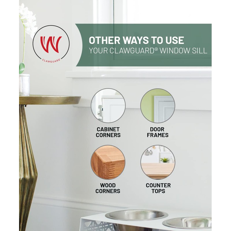 Clear window sill protector for dogs and cats that jump onto window sills. Various sizes to fit all window types. Keep your home beautiful and protected, clean and safe with CLAWGUARD Window Sill Protectors.