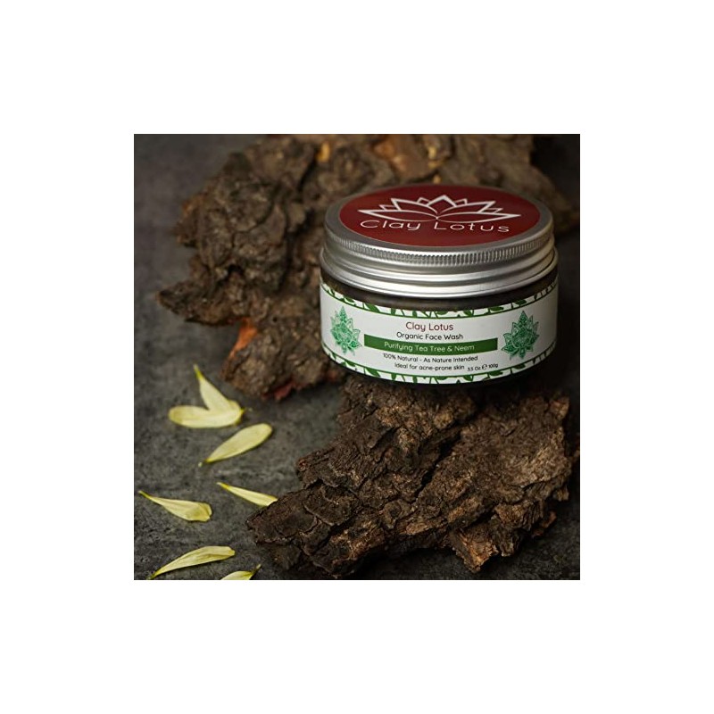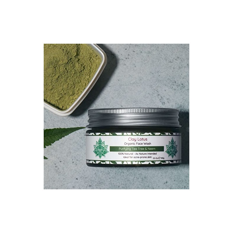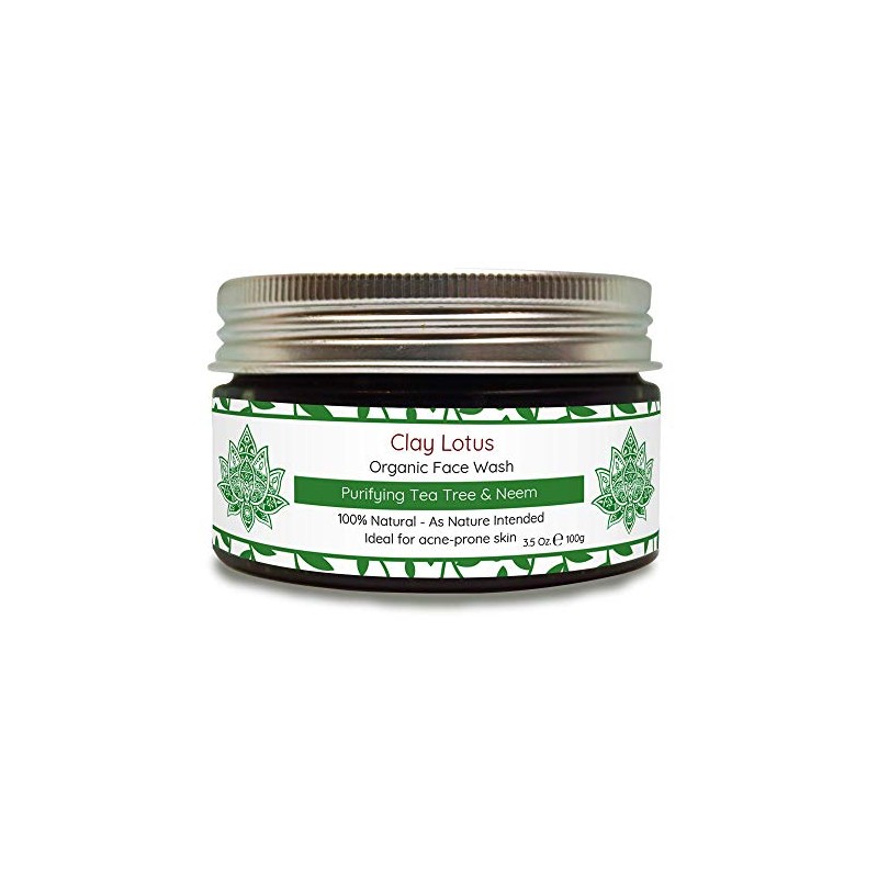 Clay Lotus Limpiador facial orgnico para piel propensa al acn, grasa con aceite de rbol de t y neem. Limpiador facial para acn todo natural, elimina