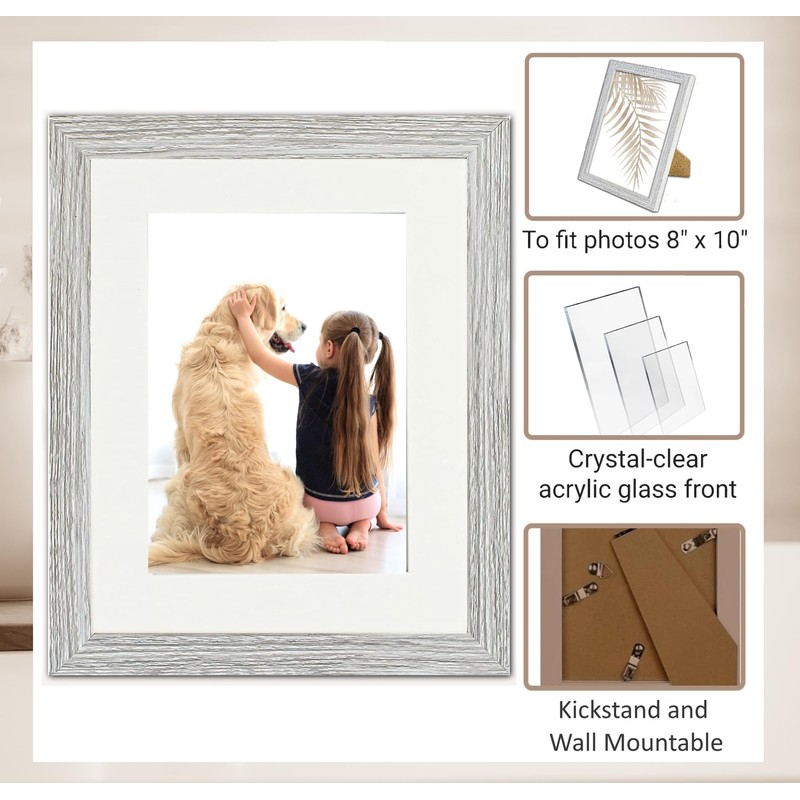 - Contemporary white Frames – The smooth white finish of these 8 x 10 frames provides a stylish and modern look, enhancing the beauty of your photos, pictures, or artwork. They’re perfect for creating a polished and warming display in any room.