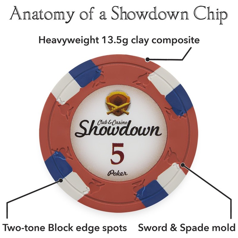 - Each chip is pressed with a regal Sword & Spade mold and features a handsome Showdown inlay