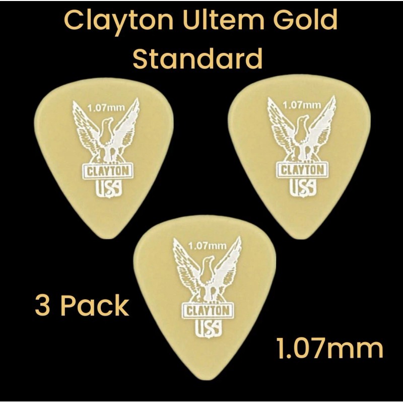 Clayton Ultem Gold Standard Picks, 1.07mm Gauge, 3 Picks