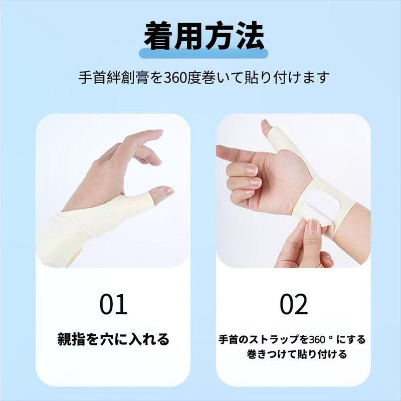 Provides extra support to the base of the thumb and wrist, reducing tendonitis and wrist pain. While performing daily activities (operating your computer, using your smartphone, doing housework, or nursing, etc.), it reduces the burden and is effective in preventing recurrences.
