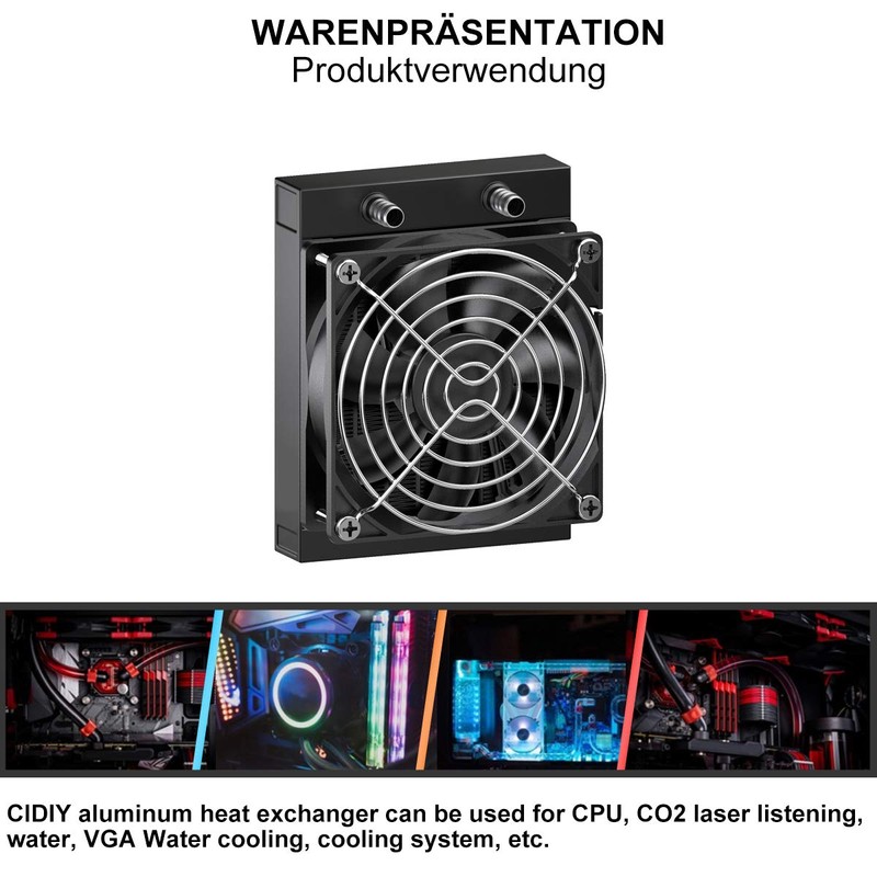 CLDIY Water Cooling Cooler, 12 Tube Aluminum Heat Exchanger Cooler with Fan for PC CPU Computer Water Cooling System DC12V 120mm