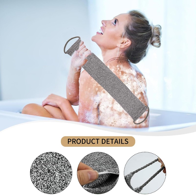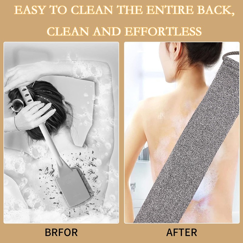 - User Friendly Design Our back brush is made of high quality bamboo fiber, which is more durable and elastic than normal towels. The exfoliating back brush has reinforced handles on both sides to easily clean hard to reach areas.
