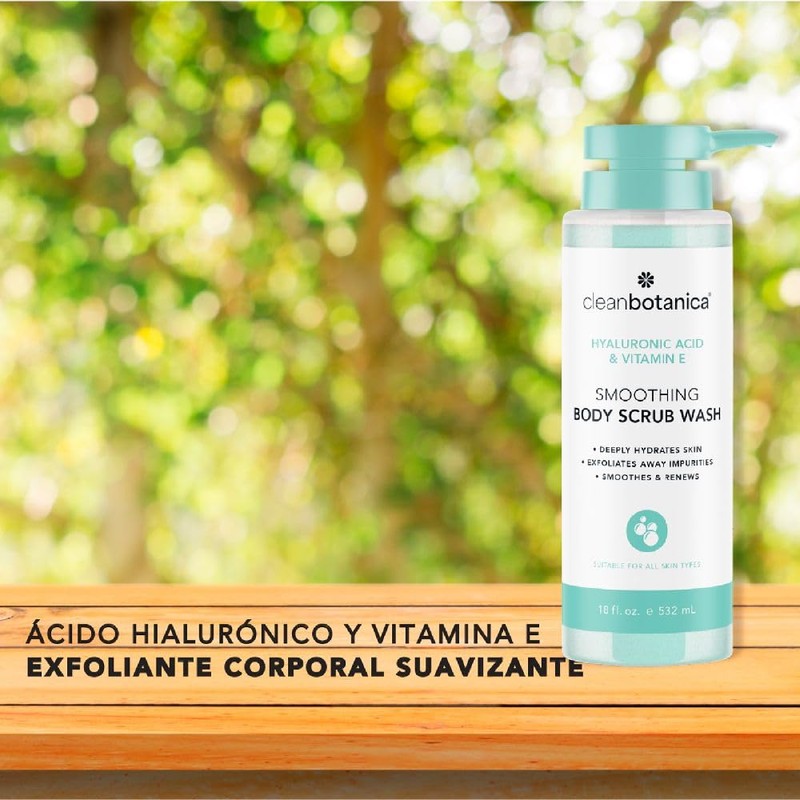 CLEAN BOTÁNICA, Exfoliante de Baño Espumoso con Ácido Hialurónico y Vitamina E, Sin Parabenos, Suaviza y Nutre la Piel