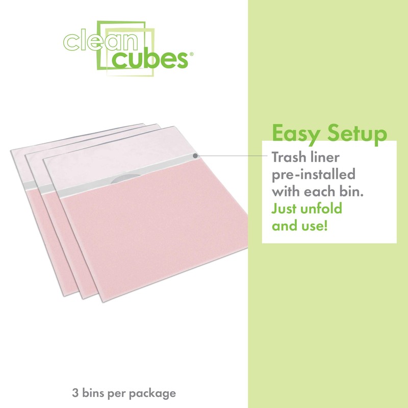Clean Cubes 13 Gallon Disposable Trash Cans (3-Pack). Reusable Garbage and Recycling Bins for Parties, Events, and More (Pink - 17" Height x 13.5" Width x 10" Depth)
