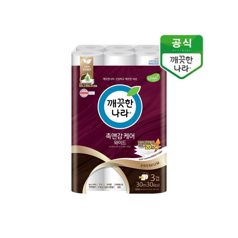 Clean Nara Tactile and Sensory Care Wide 30m 30 Rolls / 깨끗한나라 촉앤감케어 와이드 30m 30롤