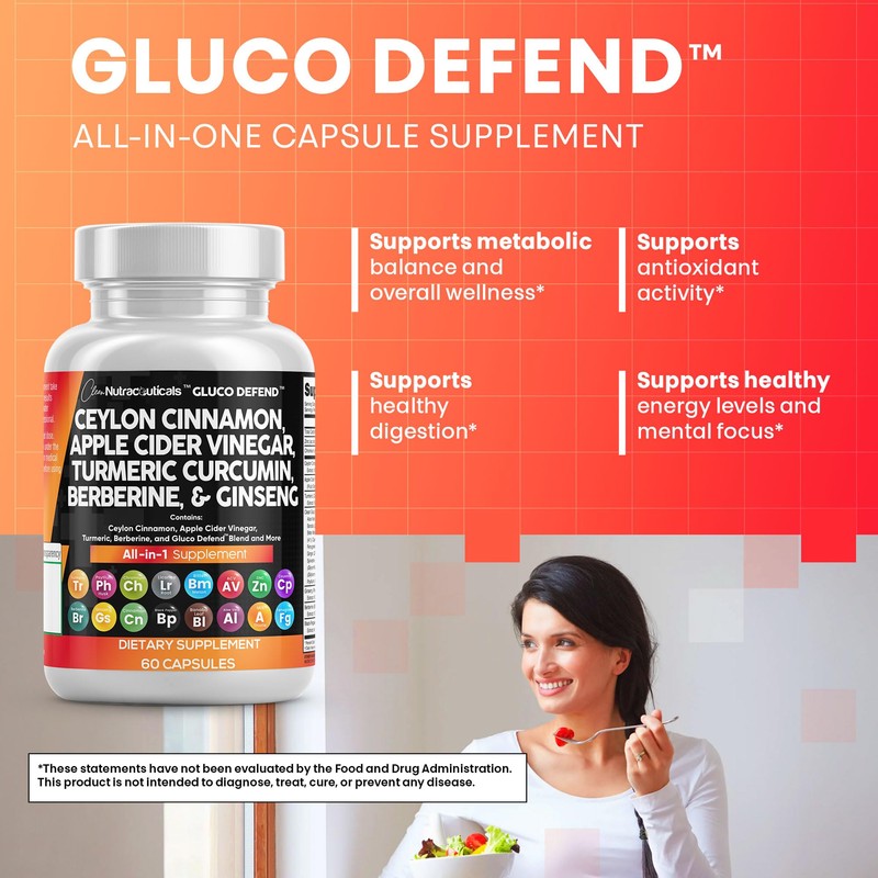 - The Ultimate Ceylon True Cinnamon and Apple Cider Vinegar Supplements You’ve Been Looking For - Clean Nutra's Gluco Defend provides 5 full-dose products in one, containing a full acv capsules with mother organic, cinnamon from ceylon, berberine complex, and korean red ginseng capsules in a convenient 2 capsule dosage!