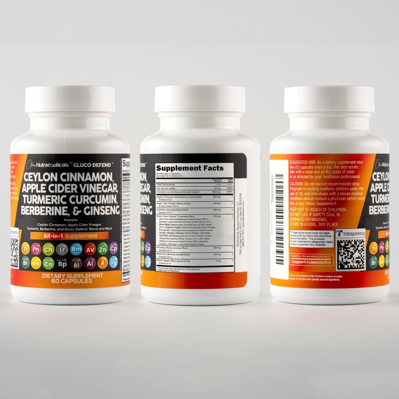 - Powerful Blend Of Herbs & Minerals - Gluco Defend is overflowing with potent ACV Supplements, Ceylon Cinnamon, Tumeric Pills, Berberine and Chromium, and Korean Panax Ginseng. Clear out those countless supplements in your supplement cabinet, and replace it with just one cinnamon verum, acv, tumeric, berberine extract, and red korean ginseng 16-in-1 complex formula by Clean Nutraceuticals.