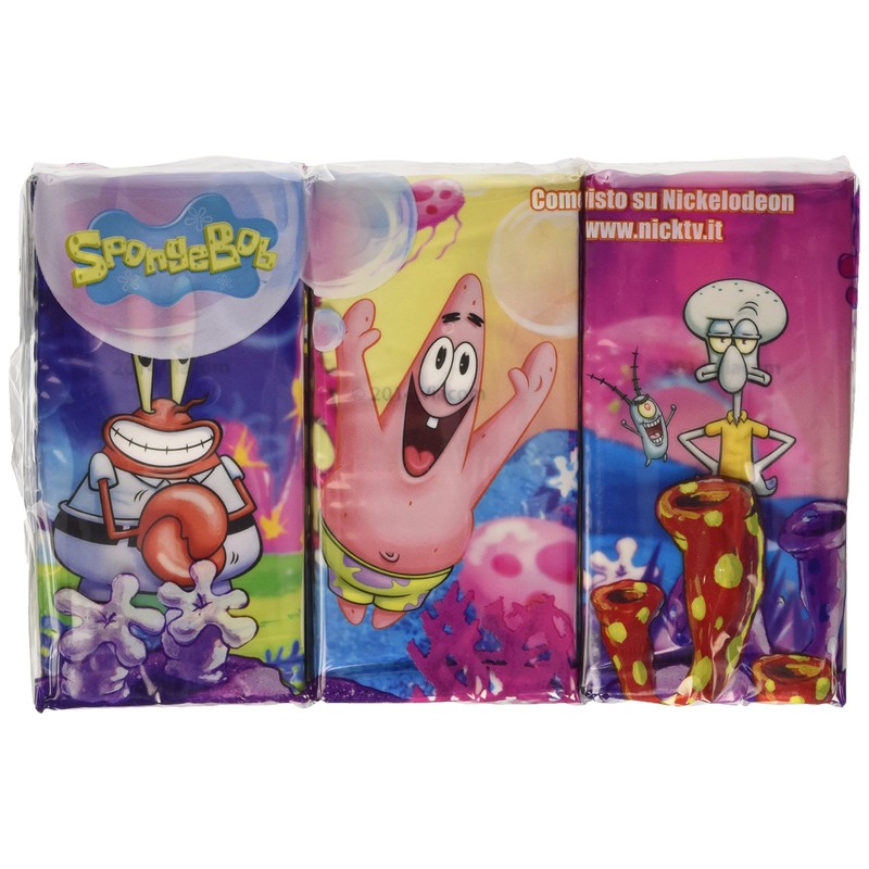 - Spongebob Squarepants characters on packaging and each tissue
