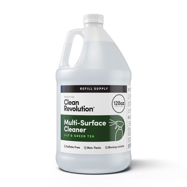 Clean Revolution Multi Surface Cleaner Refill Supply, Non-Toxic, Eco-Friendly & Plant-Based, Ready to Use, Lily & Green Tea, 128 Fl Oz (1 Gallon)