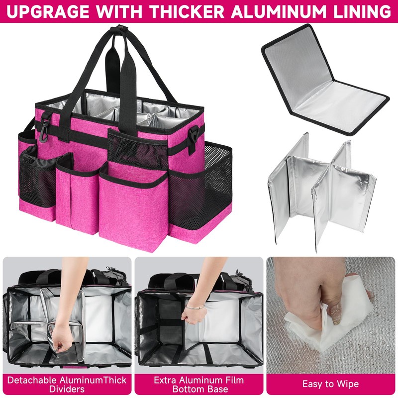 - Premium & Easy to Clean: This cleaning supply storage bag is made of durable polyester with an upgraded insulated thickened aluminum lining and a breathable mesh base for long-lasting durability. The cleaning bag also features an additional aluminum film liner at the bottom that can be removed and washed in case of stains or spills.