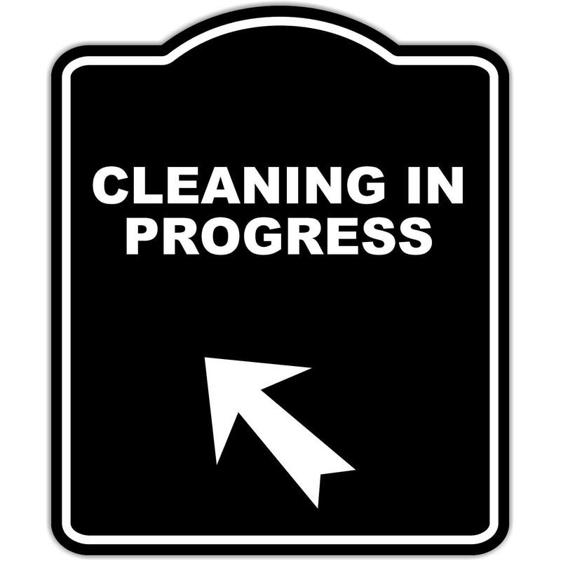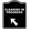 CLEANING IN PROGRESS Black Sign Arrow Up Left Aluminum Composite Sign 15 x 18 inches