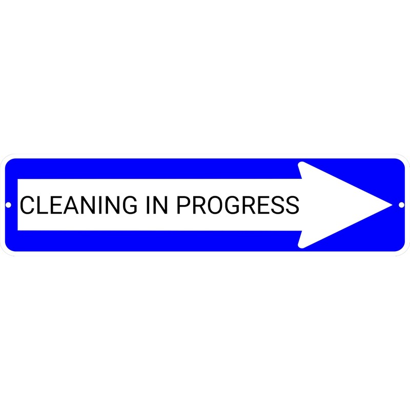 CLEANING IN PROGRESS Blue Right Arrow 24 x 6 inch Aluminum Composite Sign