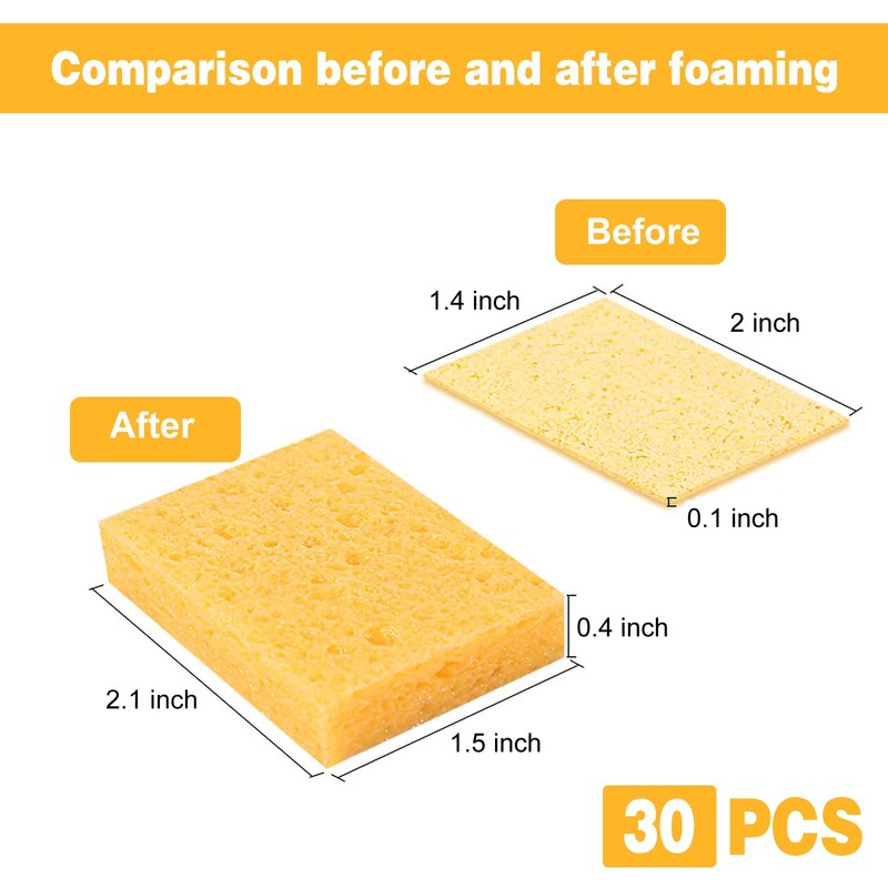 - Package includes: you will receive 30 pieces 1.4 x 2 x 0.1 inch soldering iron cleaning sponges. They are easy to use and of large quantity to meet your different needs.