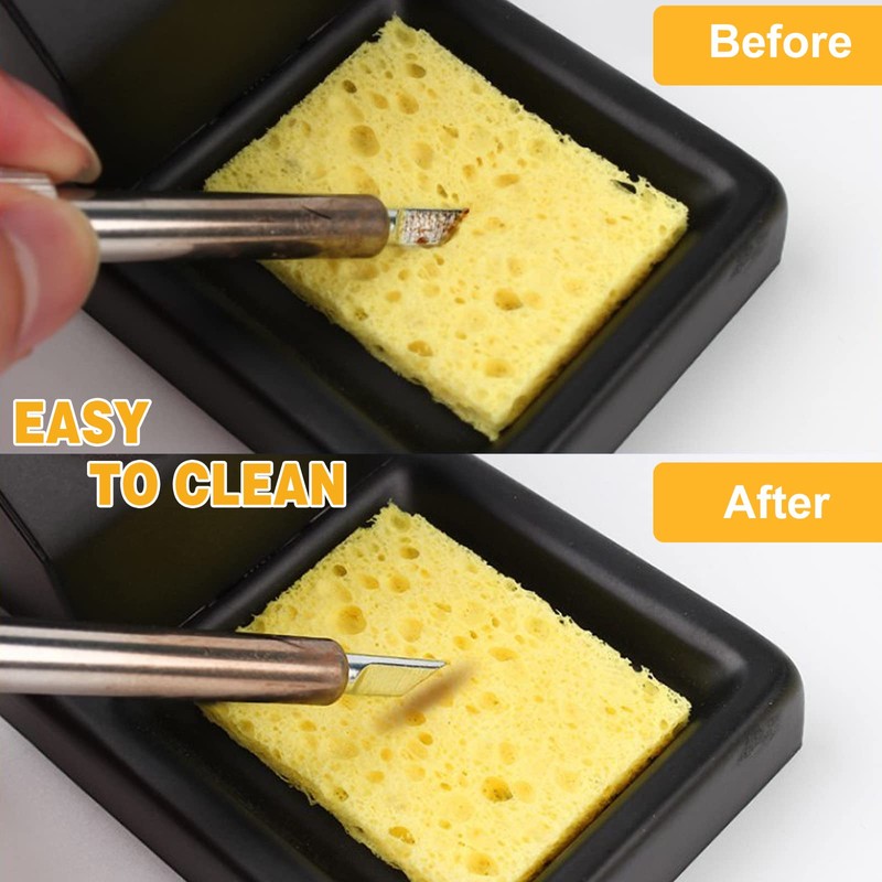 - Elaborate design: the cleaning sponge can quickly clean the oxide layer on the surface of the soldering iron tip without damaging it, removing solder residue and keeping components clean.