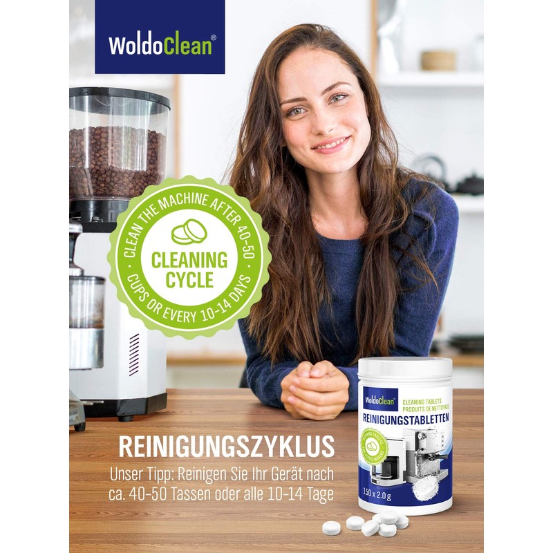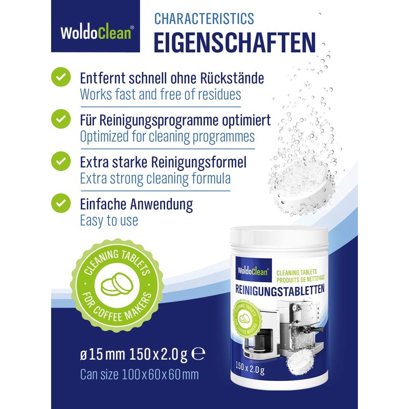 - Designed for automatic cleaning programs for fully automatic machines. 150 cleaning tabs each 2 g per cleaning tablet.