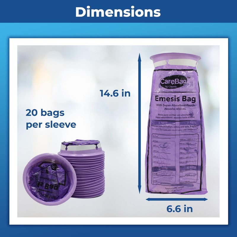 Disposable Emesis CareBag with Super Absorbent Pouch- Absorbs 16 oz.– 20 Vomit Bags- No More Leaks and Splashes- Single Use- Reduces Odors - Medical Grade- by Cleanis