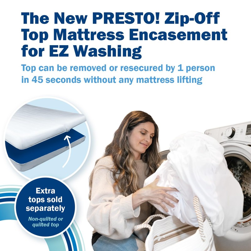 - Revolutionary Zip-N-Click Design: Remove the quilted top in 45 seconds for laundering without lifting the mattress; extra tops available for quick replacements.