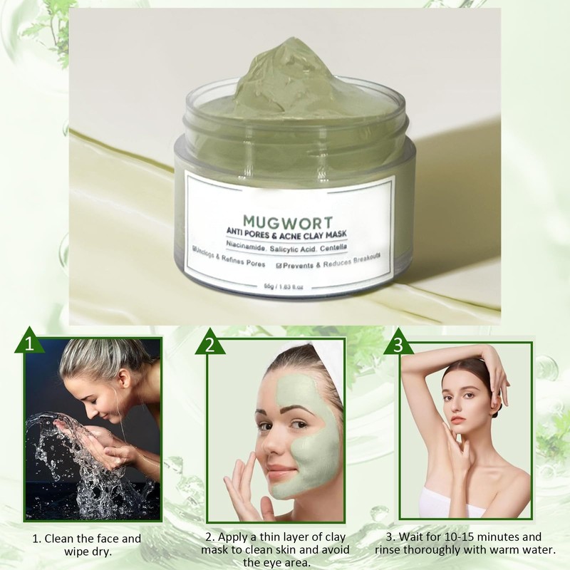 Cleansing Clay Mask, Face Pore Cleanser Cleansing Face Mask, Mugwort Clay Mask, Beauty Face Clay Facial Mask, Beauty Clay Face Masks for Deep Cleansing, Oil Control