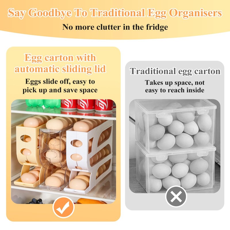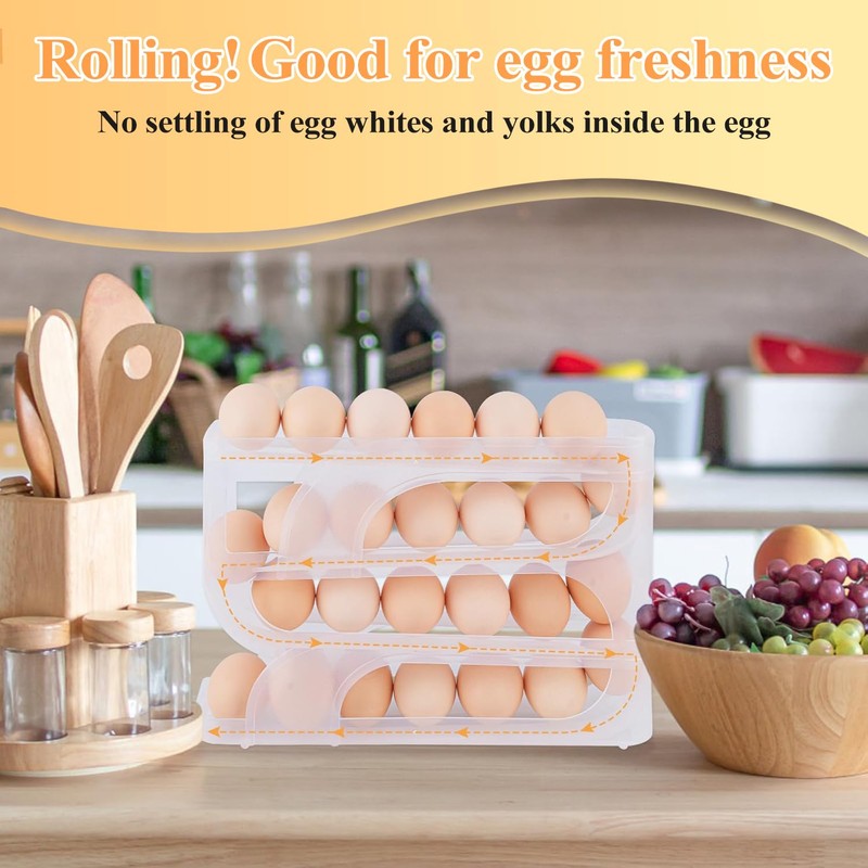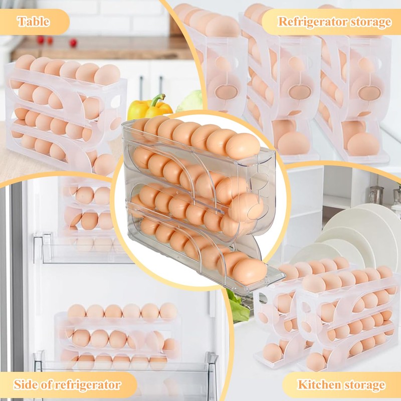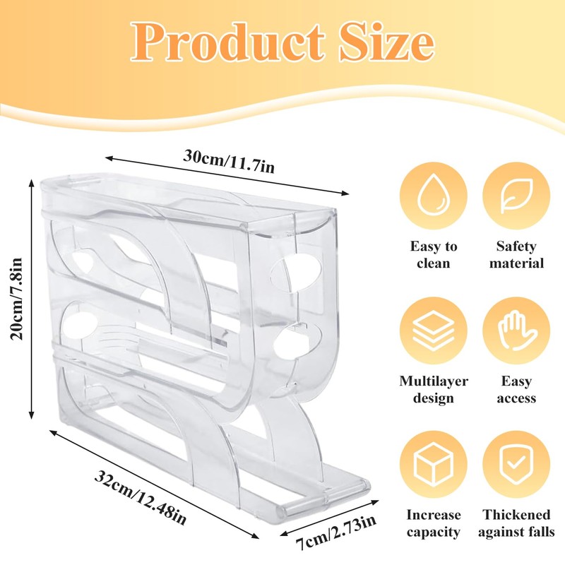 • Efficient 4-Tier Storage: With the capacity to hold up to 30 eggs, this 4-tier organizer helps you save valuable space in your fridge while keeping your eggs neatly stored and easily accessible.