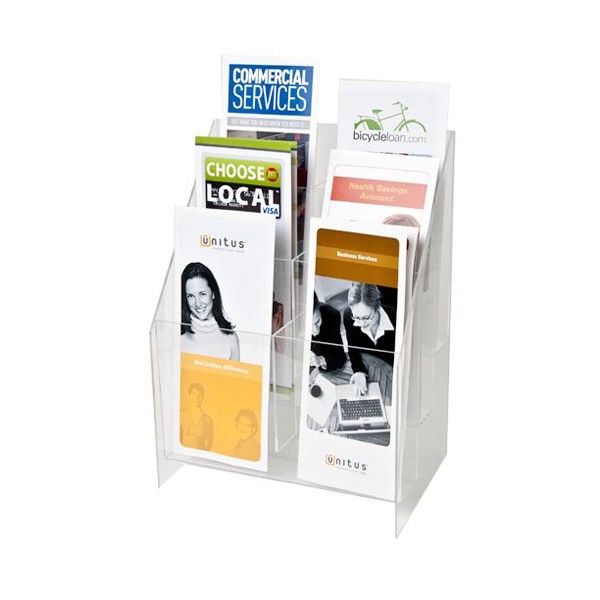 - PREMIUM PAMPHLET STAND: Clear-Ad MPF-0409-6 is a part of the premium range of clear acrylic office accessories manufactured by Clear-Ad. This listing is for a three tiered, 6 pocket brochure stand.
