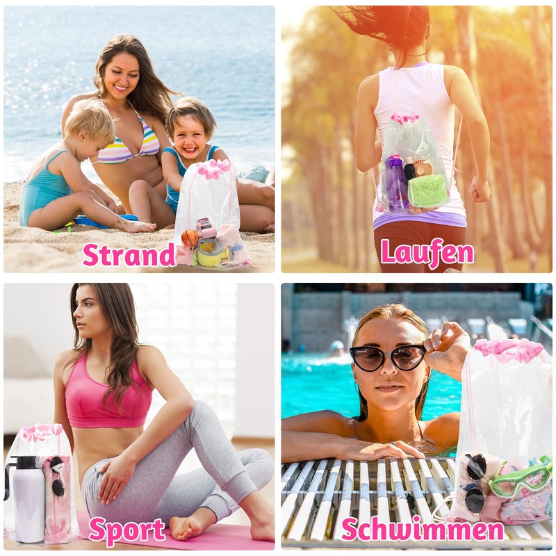 Widely Used The clear drawstring bag is perfect for sports, travel, swimming and the beach. The clear backpack provides enough space for sunscreen, water bottle, wallet, keys, phone, hat, sunglasses and more. A transparent festival bag is also ideal for events and ensures that you are always well organised. Use it as a clear bag festival or backpack transparent festival and enjoy carefree moments