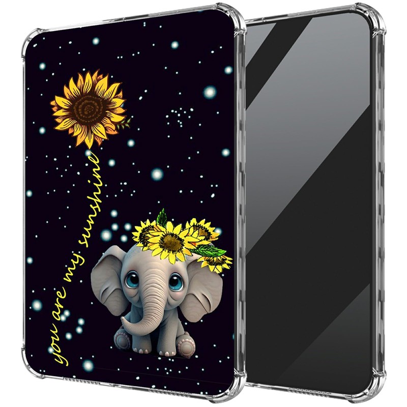 Clear Case for Kindle Paperwhite 12th Gen 2024 (7") & Kindle Colorsoft Signature Edition (7"),Transparent Ultra-Thin Soft TPU Anti-Slip Shockproof Protection Cover,Elephant Sunflower