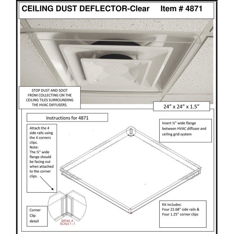 - Package of 2 CLEAR CEILING DUST DEFLECTOR FOR 2'X2' CEILING AIR DIFFUSERS, ceiling vents not included.