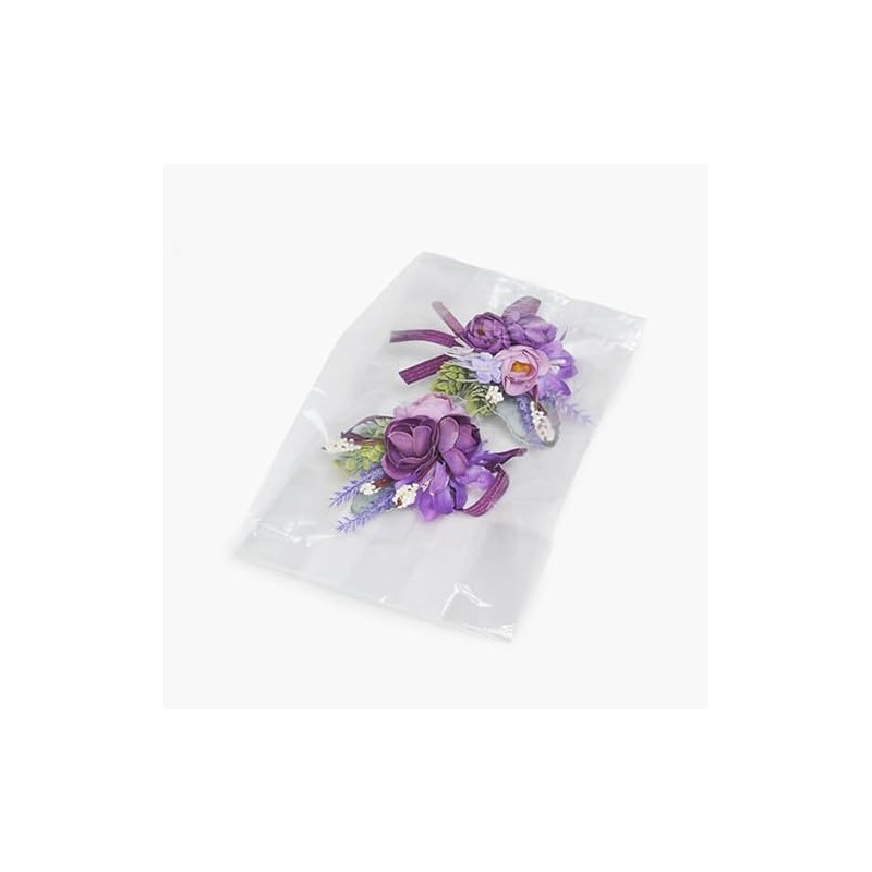 - These 5.5 x 3.25 x 12" crystal clear corsage bag holds medium corsages, boxes, gourmet treats, and so much more. Boxed in a convenient dispenser box. Complies with FDA regulations for food packaging.