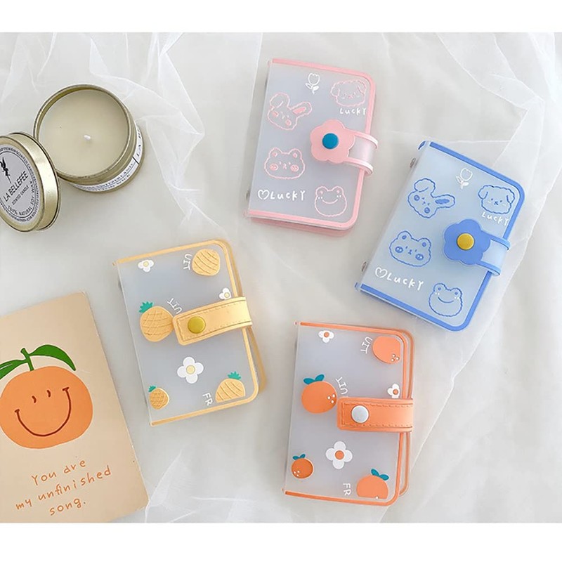 Clear Credit ID Card Holder Case Pocket Card Wallets Purse Card Pouch Organizer 20 Slots with Cartoon Pattern Orange