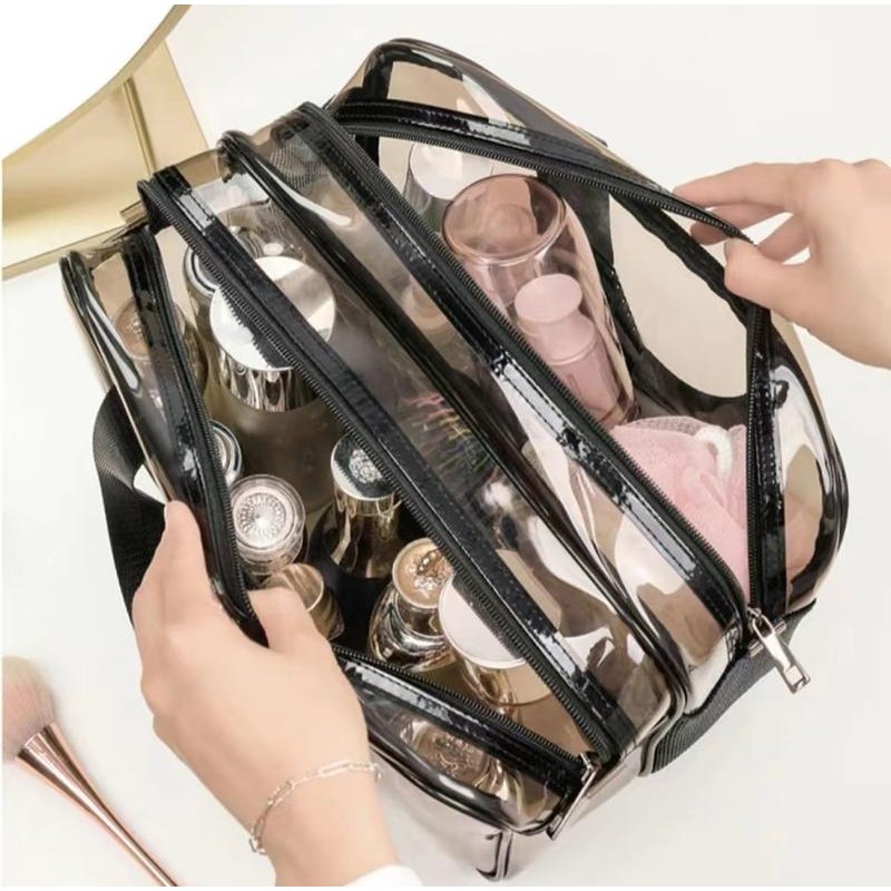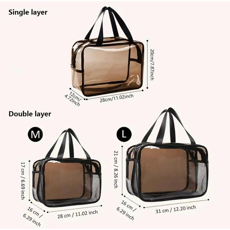 Clear Double-layer Travel Makeup Bag, Large Capacity Portable Cosmetic Toiletry Bag with Wet & Dry Uses Zipper Makeup Pouch, Back To School- 1 Count - Color: clear, specifi cation: L
