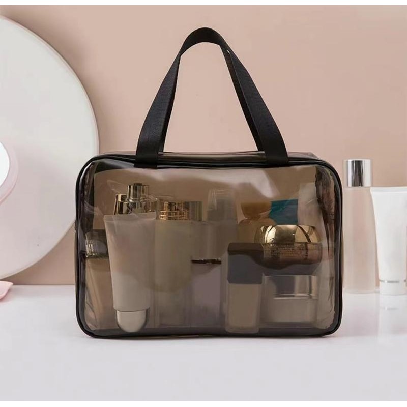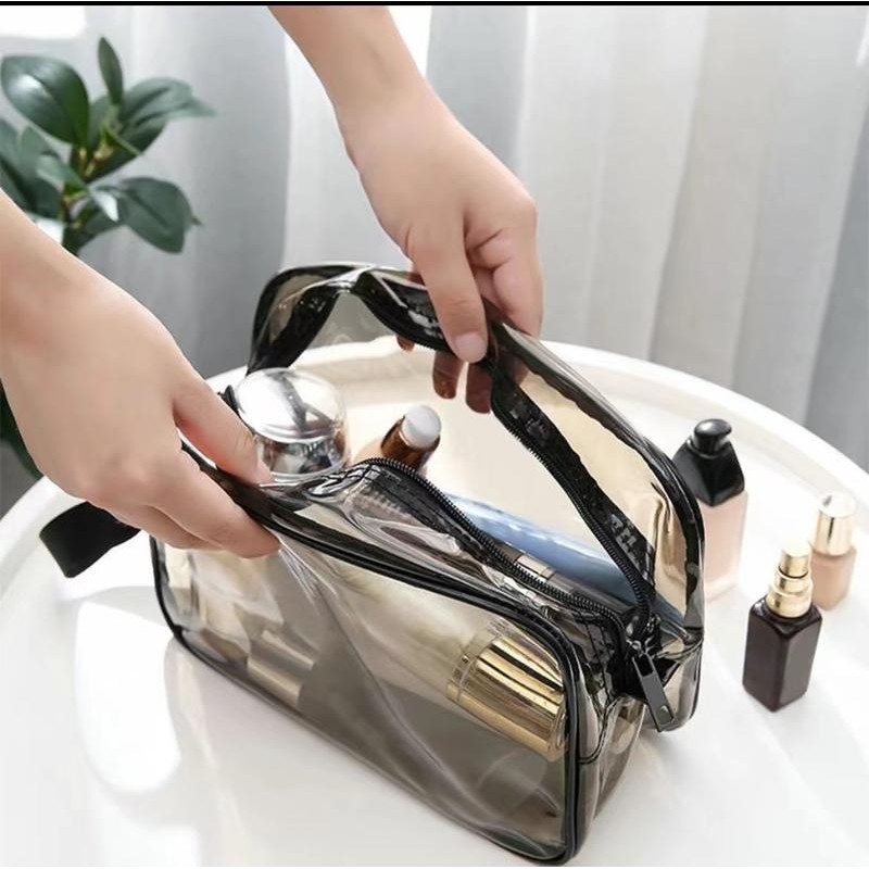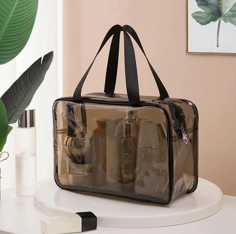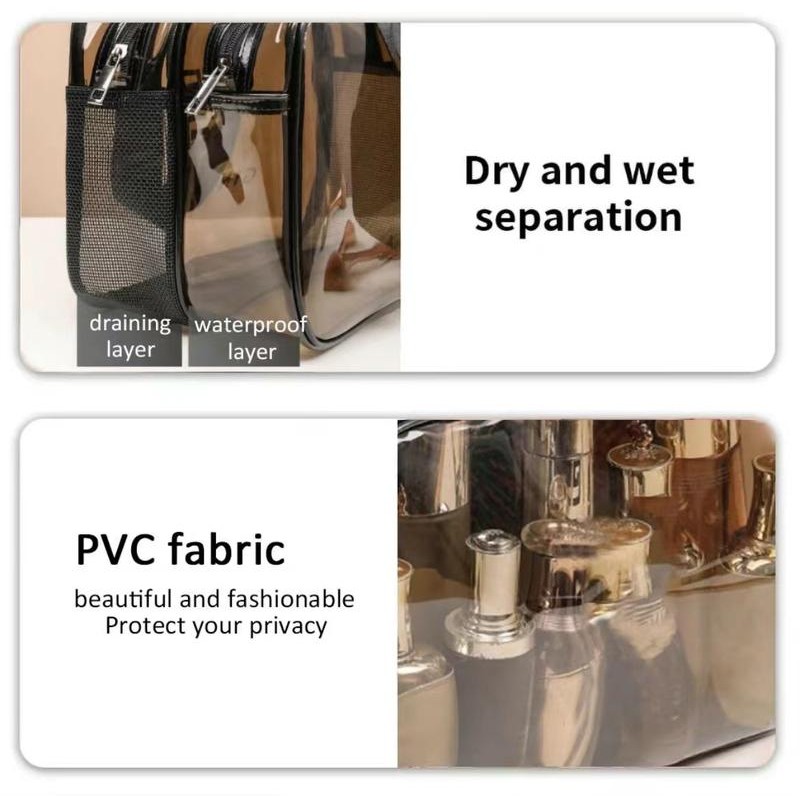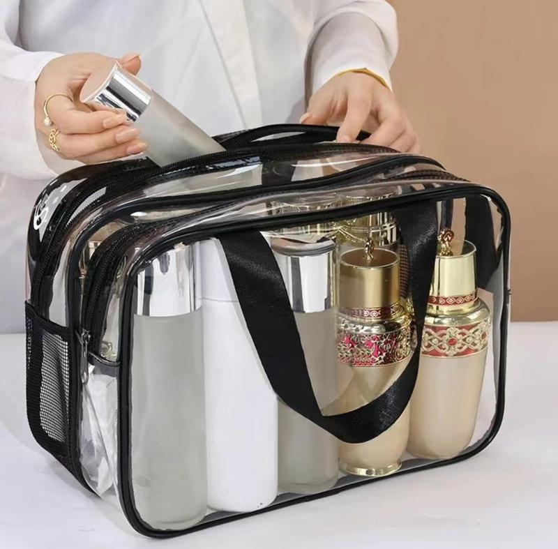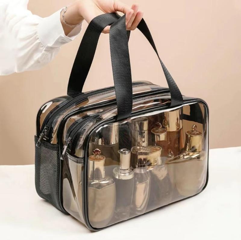 Clear Double-layer Travel Makeup Bag, Large Capacity Portable Cosmetic Toiletry Bag with Wet & Dry Uses Zipper Makeup Pouch, Back To School- 1 Count - Color: clear, specifi cation: M