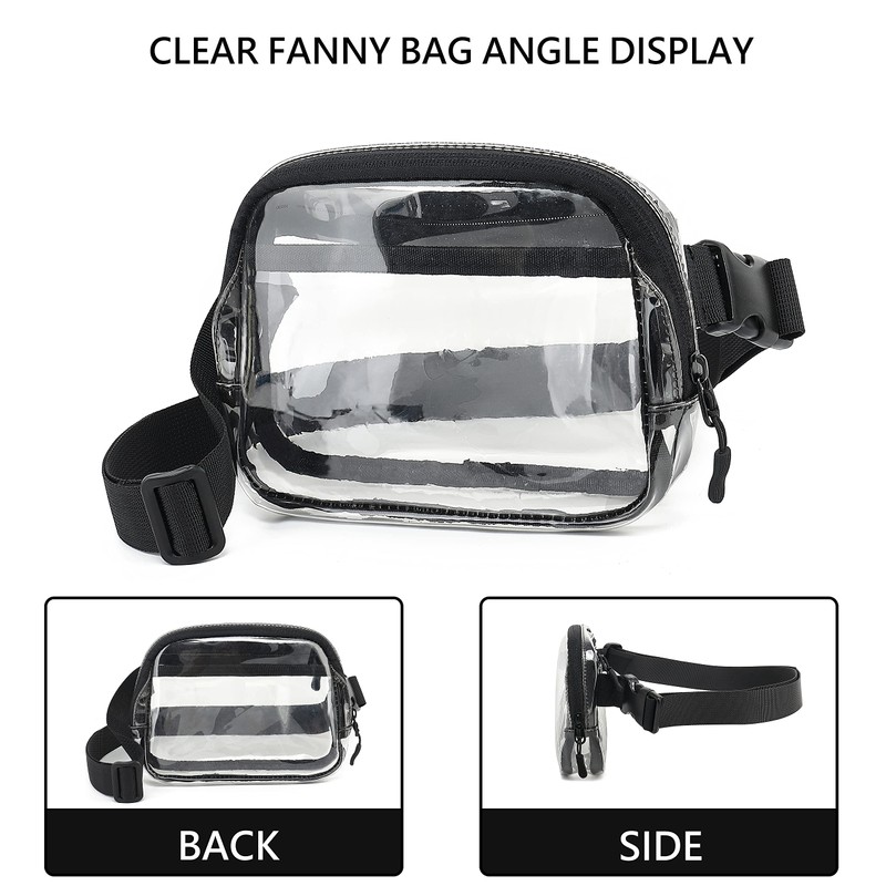 - ✔【SUITABLE FOR VARIOUS OCCASIONS】This see through fanny bag is ideal for stadiums, sporting events, exercise, concert, hiking and perfect for concerts, etc. That is a awesome gift for your family and friends. Our clear bags is easy to clean, just wipe the stain with a wet cloth.