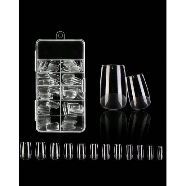 Clear Full Coverage Press-On Nails, 120 Pieces, Short Square Style, Professio...