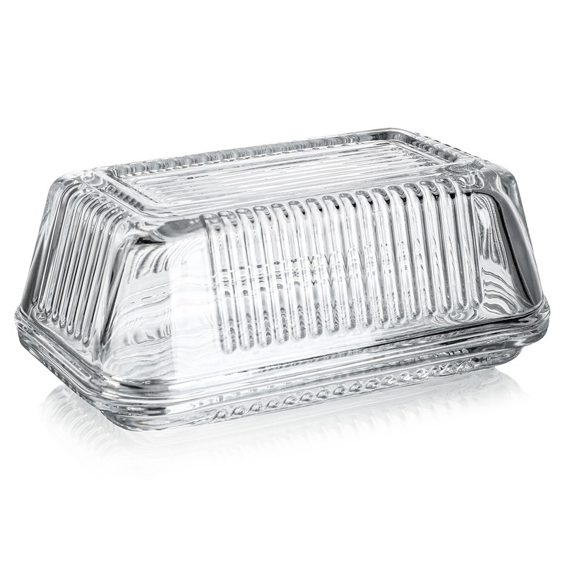 • Butter Dish with Lid - The clear glass lid keeps butter safe from dust, pets, and contaminants, preserving freshness and hygiene for every use