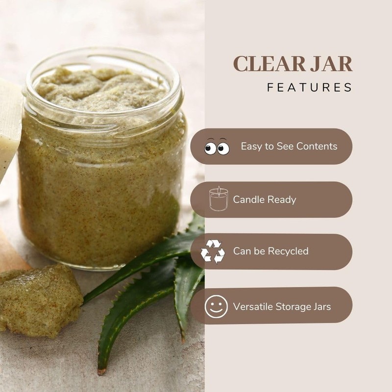 - PREMIUM QUALITY 15ml CLEAR GLASS COSMETIC JARS WITH BLACK LIDS: Create your own homemade ointments, lotions, creams and body scrubs and store them in these secure and stylish jars.