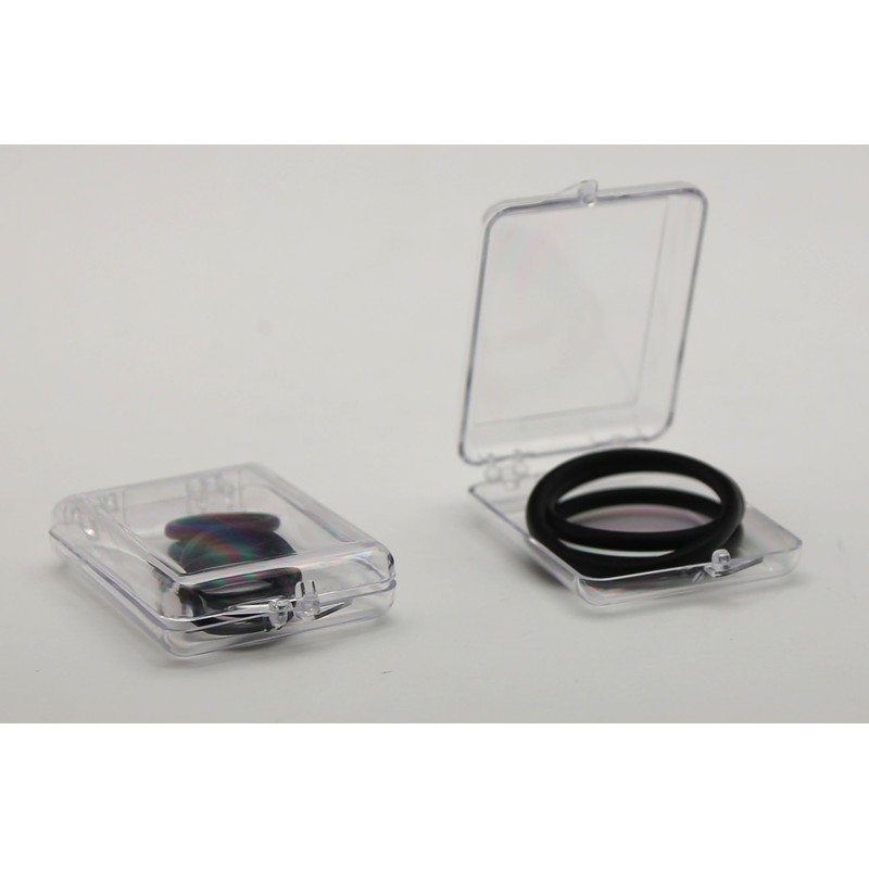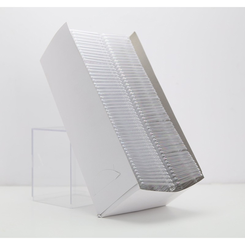 - Clear Hard Plastic Keepsake Storage Box: Fifty (50) 1.625 -in long x 2.125-in wide x 0.375-in high (interior dimensions) hinged lid rigid box clear display case for collectibles