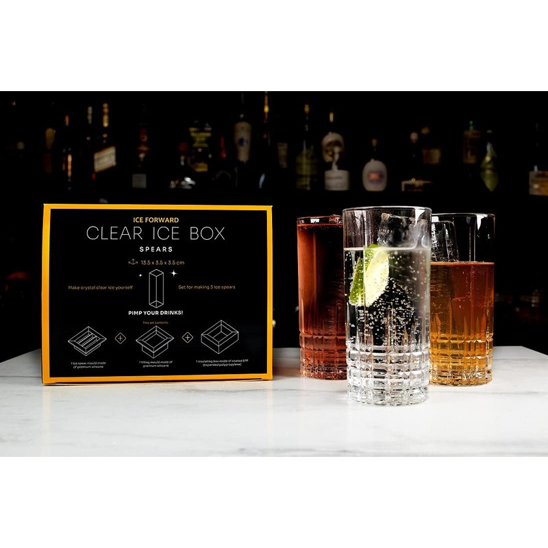 Clear Ice Box Spears | Ice Box with Ice Bar Shape for 3 Large, Clear Ice Sticks | Each 13.5 x 3.5 x 3.5 cm | Crystal Clear | Melts Slower | Ideal for Long Drinks & Lemonades