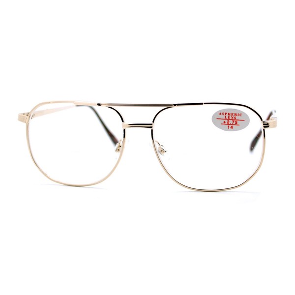 Clear Lens Glasses + Bifocal Reading Lens Vintage Square Spring Hinge Gold+3.50