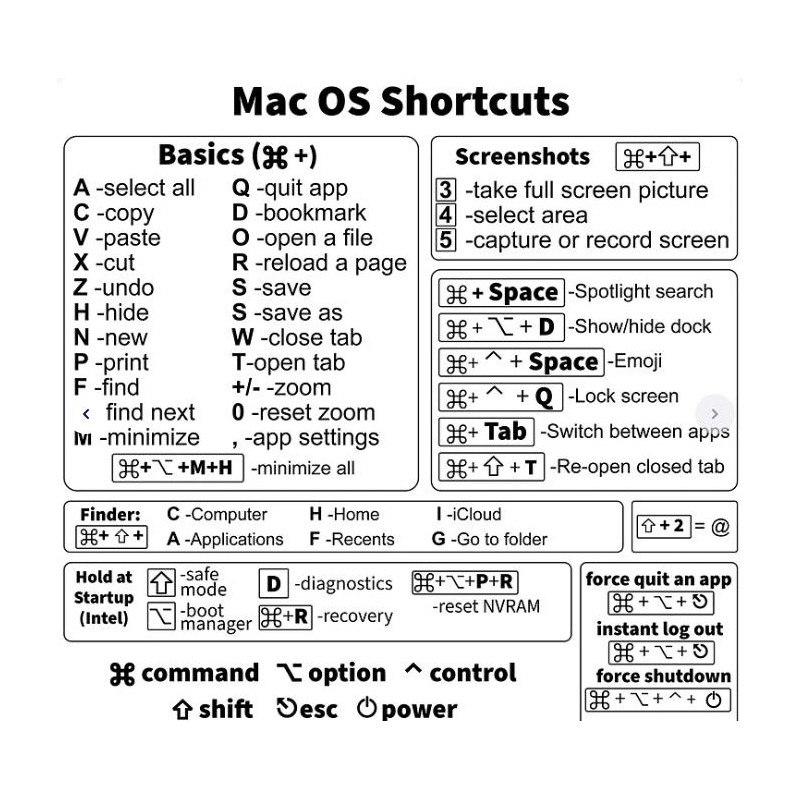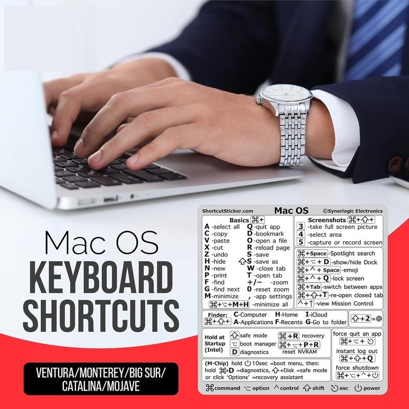 Clear M1, M2 & Intel MacBook Pro Mac OS Keyboard Shortcut Waterproof Vinyl Sticker
