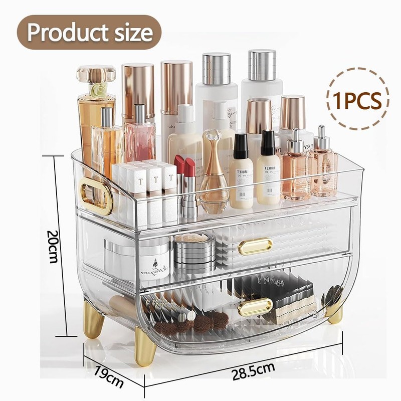 Clear Makeup Organizer with Drawers - Dustproof Skincare Storage Box for Vanity and Bathroom Counter