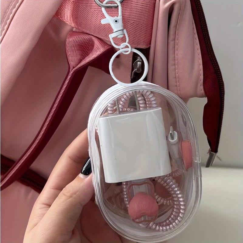 Clear Plastic Storage Bag, 2 Counts Portable Ear Plug & Cable Organizer, Mini Protective Travel Bag with Key Fob Accessory