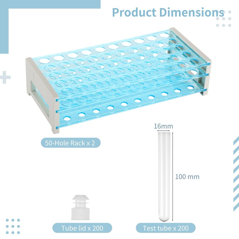 - Hole Rack Design: Comes with two racks; each rack features 50 holes in a three-layer design; stable and space-saving solution for organizing your test tubes