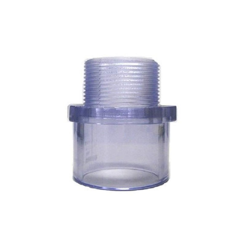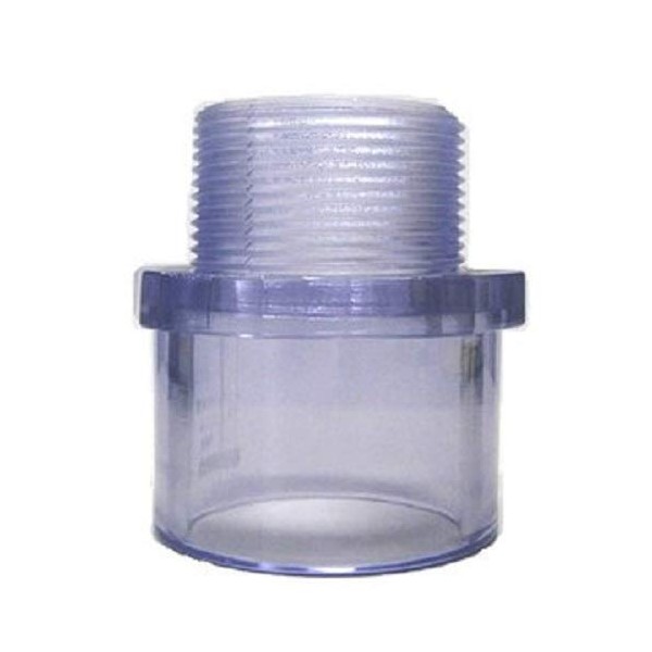 Clear PVC Pipe Fitting (bluish tint): Male Adapter, Schedule 40/80, 2 Inch PVC Pipe Socket (2.375 Inch ID) & Threads